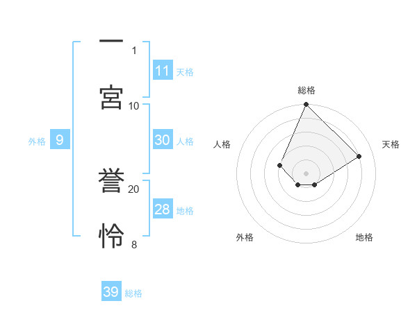 一宮 誉怜さんの総格は39画の5点!