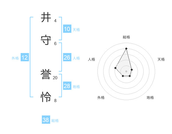 井守 誉怜さんの総格は38画の4点!