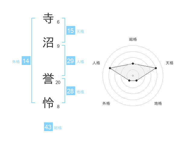 寺沼 誉怜さんの天格は15画の4点!