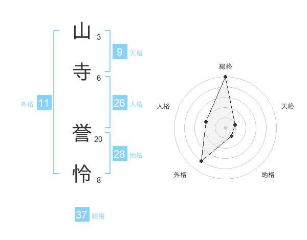 山寺 誉怜さんの総格は37画の5点!