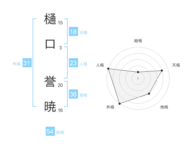 樋口 誉暁さんを姓名の画数から五運を鑑定