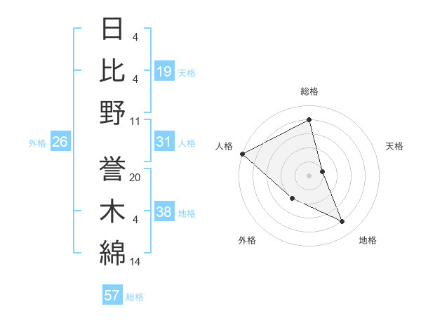 日比野 誉木綿さんを姓名の画数から五運を鑑定
