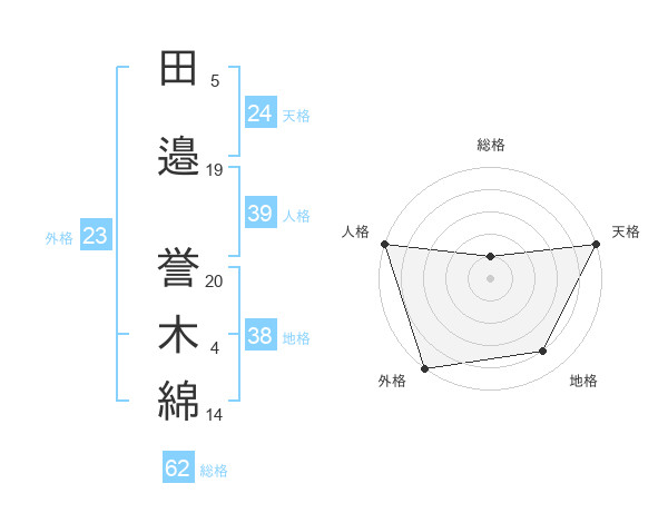 田邉 誉木綿さんの天格は24画の5点!