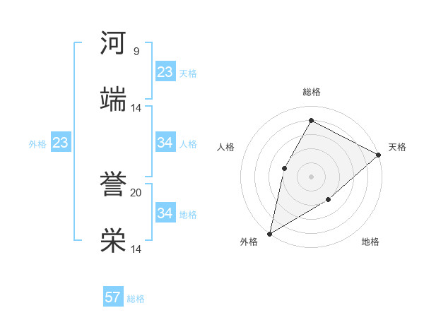 河端 誉栄さんの総格は57画の4点!