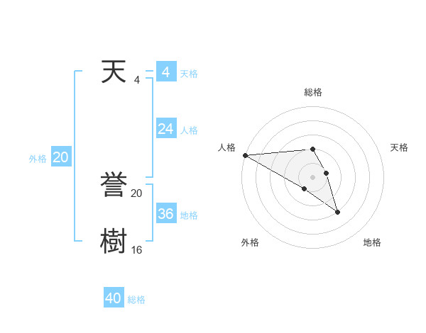 天 誉樹さんの総格は40画の2点!