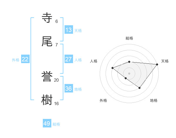 寺尾 誉樹さんの天格は13画の5点!
