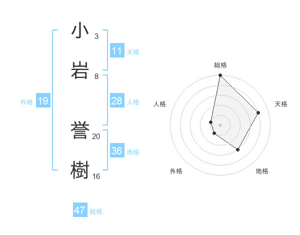 小岩 誉樹さんの総格は47画の5点!