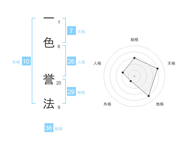 一色 誉法さんを姓名の画数から五運を鑑定