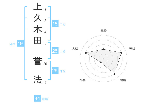 上久木田 誉法さんを姓名の画数から五運を鑑定