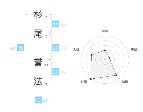 杉尾 誉法さんを姓名の画数から五運を鑑定