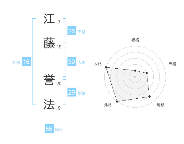 江藤 誉法さんの総格は55画の1点!