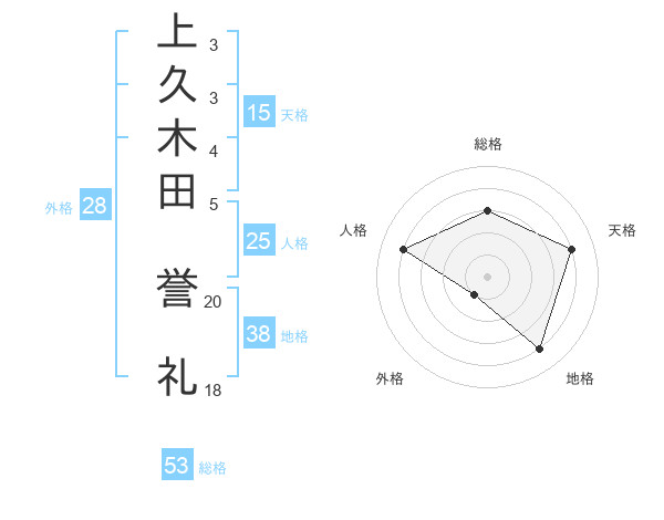 上久木田 誉礼さんを姓名の画数から五運を鑑定