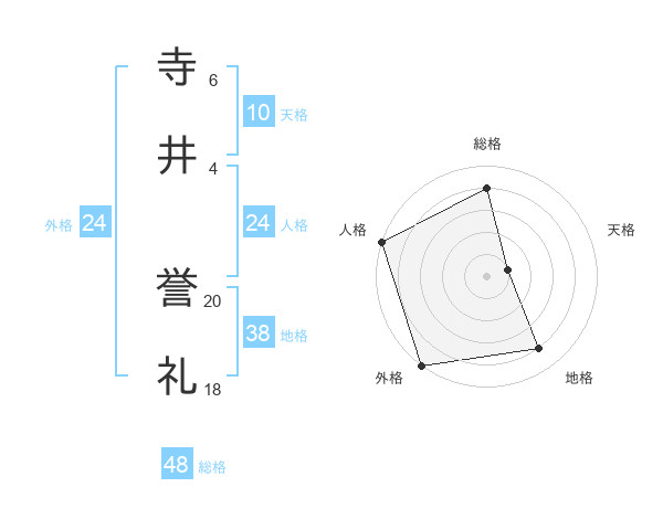 寺井 誉礼さんの総格は48画の4点!