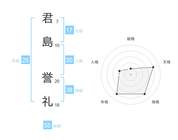 君島 誉礼さんの天格は17画の4点!