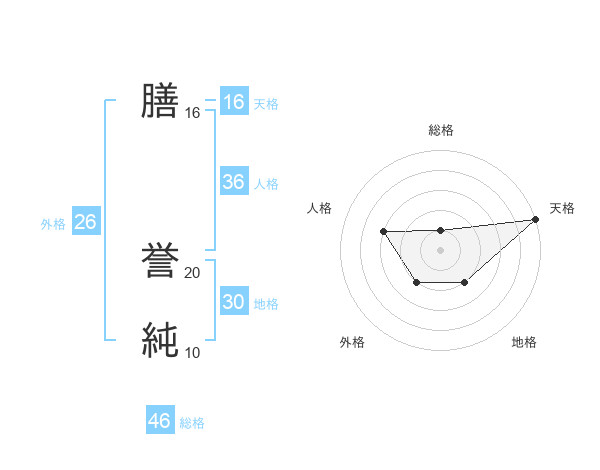 膳 誉純さんの天格は16画の5点!