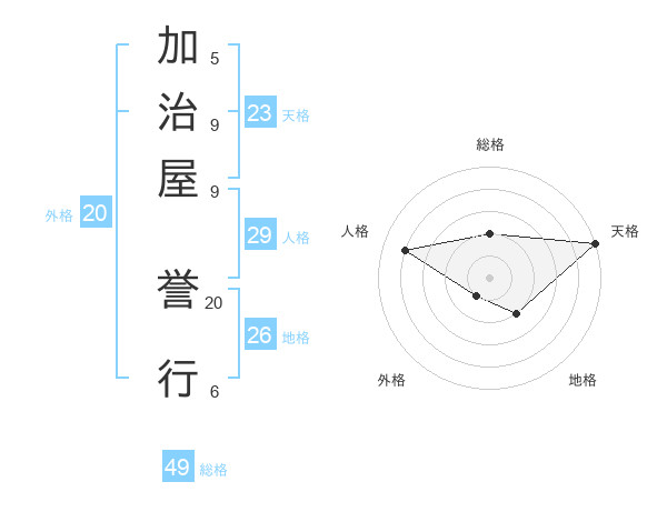 加治屋 誉行さんを姓名の画数から五運を鑑定