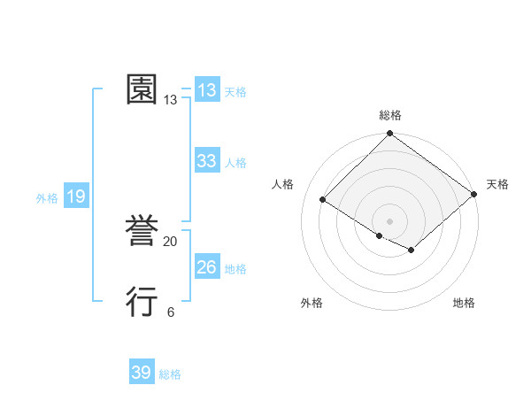 園 誉行さんの総格は39画の5点!