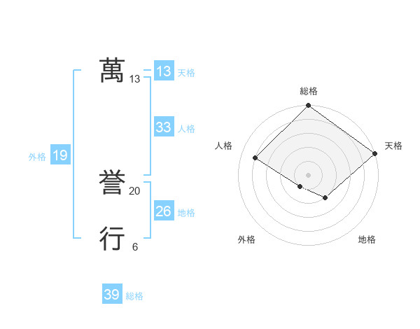 萬 誉行さんの総格は39画の5点!