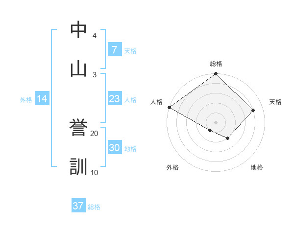 中山 誉訓さんの総格は37画の5点!