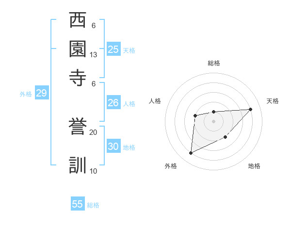 西園寺 誉訓さんを姓名の画数から五運を鑑定