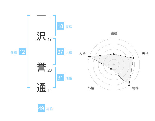 一沢 誉通さんを姓名の画数から五運を鑑定