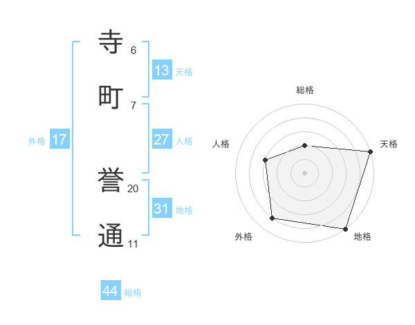 寺町 誉通さんの地格は31画の5点!