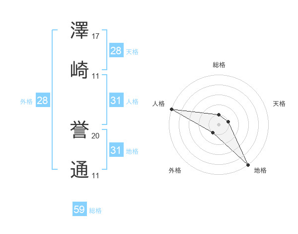 澤崎 誉通さんを姓名の画数から五運を鑑定