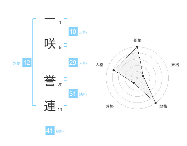 一咲 誉連さんを姓名の画数から五運を鑑定