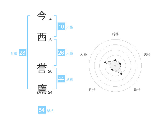 今西 誉鷹さんを姓名の画数から五運を鑑定