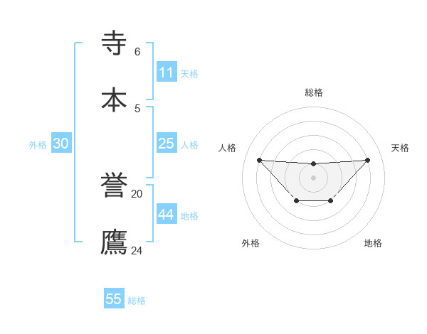 寺本 誉鷹さんを姓名の画数から五運を鑑定