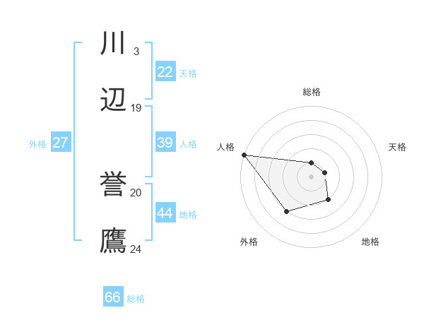 川辺 誉鷹さんを姓名の画数から五運を鑑定