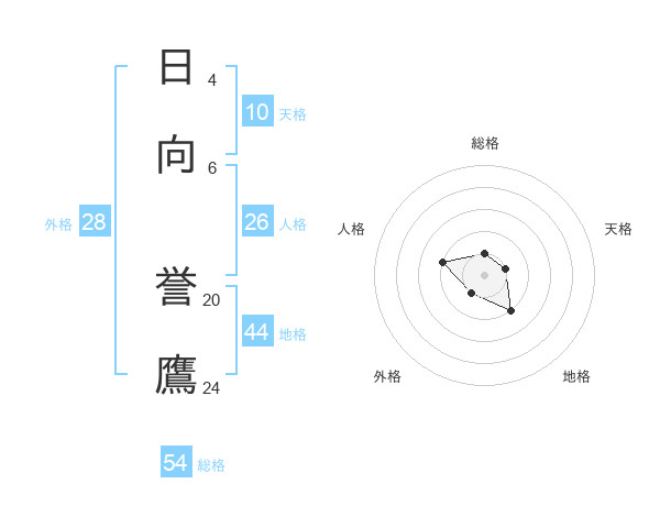 日向 誉鷹さんの総格は54画の1点!