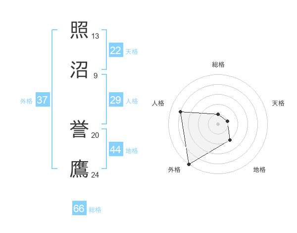 照沼 誉鷹さんを姓名の画数から五運を鑑定