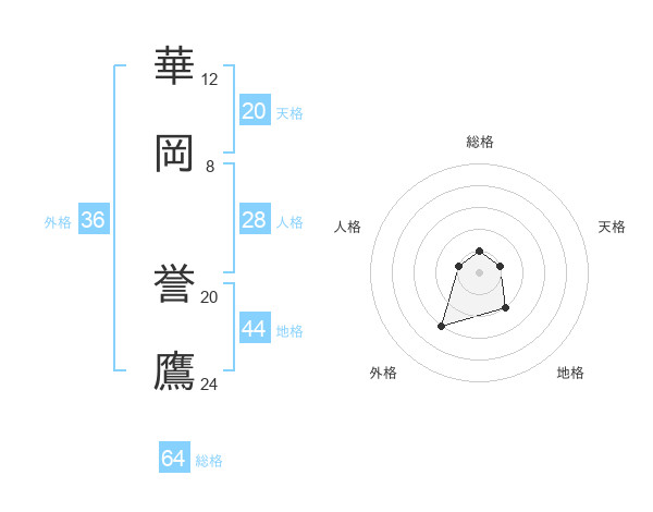 華岡 誉鷹さんの天格は20画の1点!