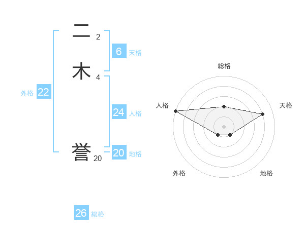 二木 誉さんの総格は26画の2点!