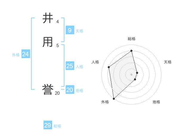 井用 誉さんの総格は29画の4点!