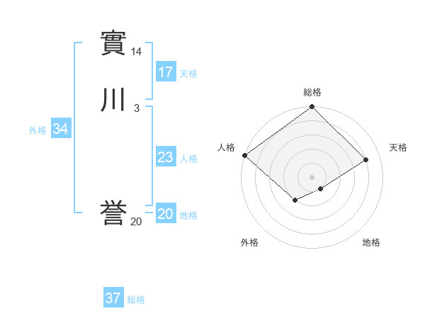 實川 誉さんの天格は17画の4点!