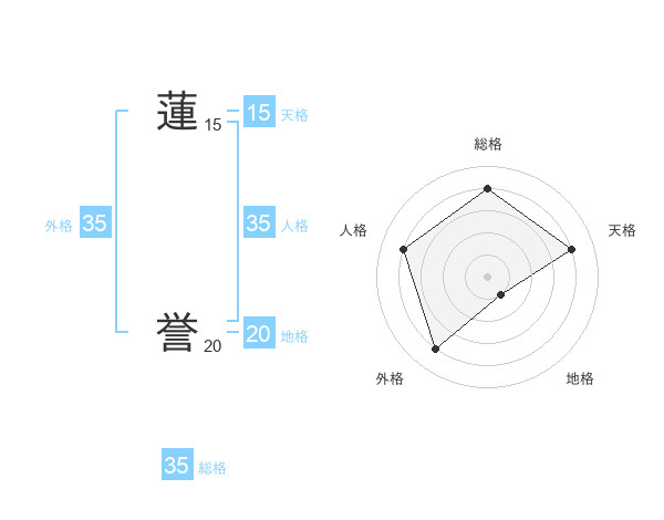蓮 誉さんの総格は35画の4点!