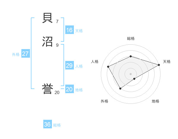貝沼 誉さんの総格は36画の3点!