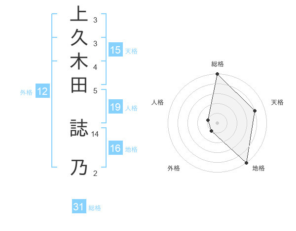 上久木田 誌乃さんを姓名の画数から五運を鑑定