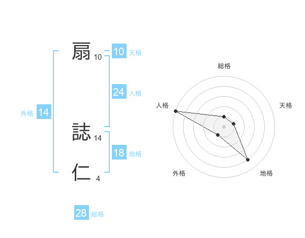 扇 誌仁さんの地格は18画の4点!