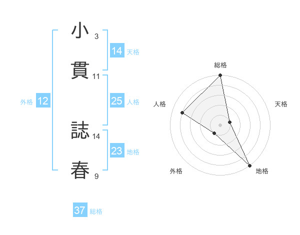 小貫 誌春さんの総格は37画の5点!
