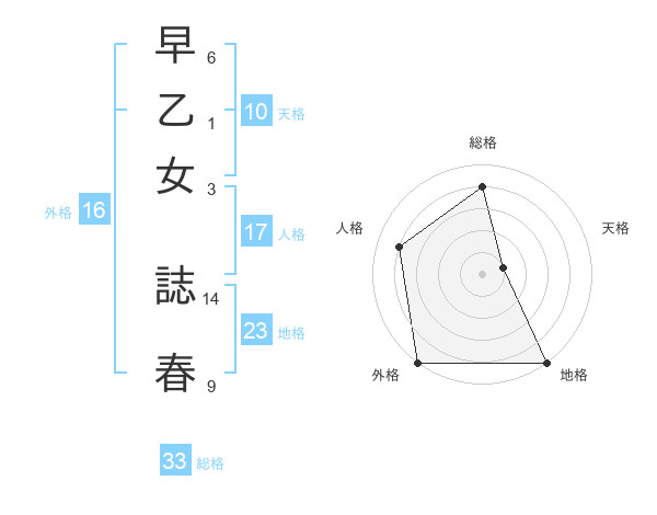 早乙女 誌春さんの総格は33画の4点!