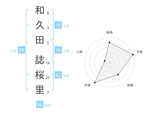 和久田 誌桜里さんを姓名の画数から五運を鑑定