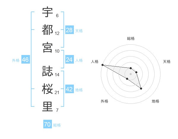 宇都宮 誌桜里さんを姓名の画数から五運を鑑定