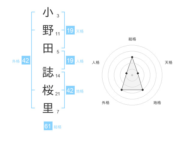 小野田 誌桜里さんを姓名の画数から五運を鑑定