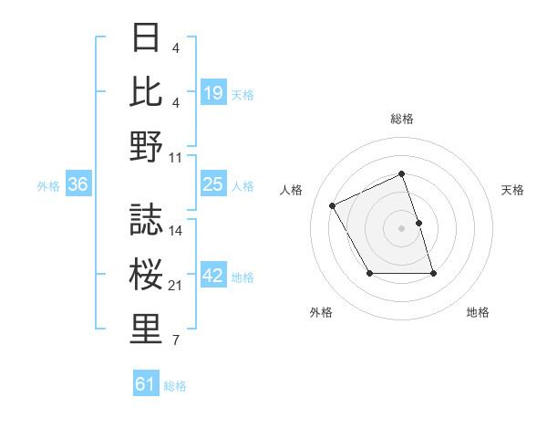 日比野 誌桜里さんを姓名の画数から五運を鑑定