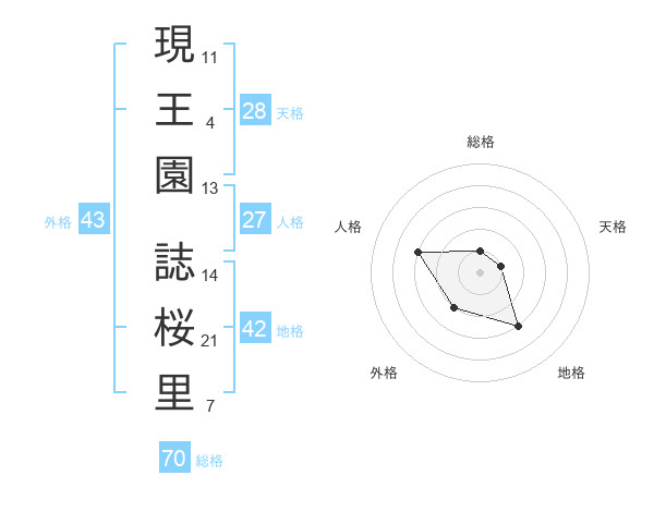 現王園 誌桜里さんを姓名の画数から五運を鑑定