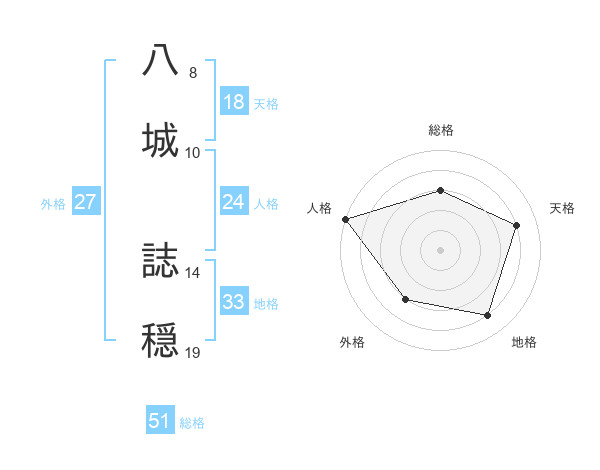 八城 誌穏さんを姓名の画数から五運を鑑定