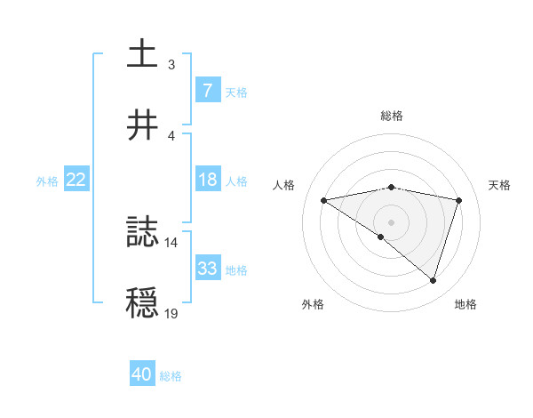 土井 誌穏さんの総格は40画の2点!